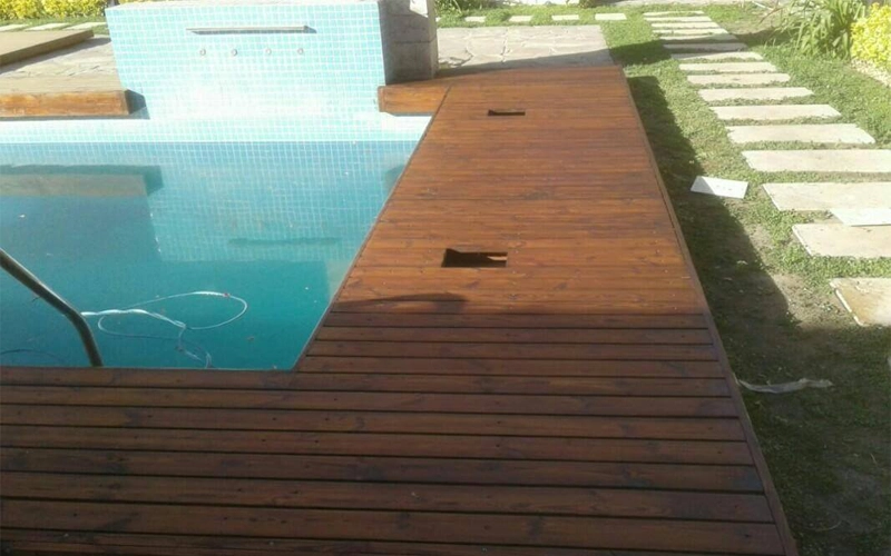 چوب پلاست اطراف استخر