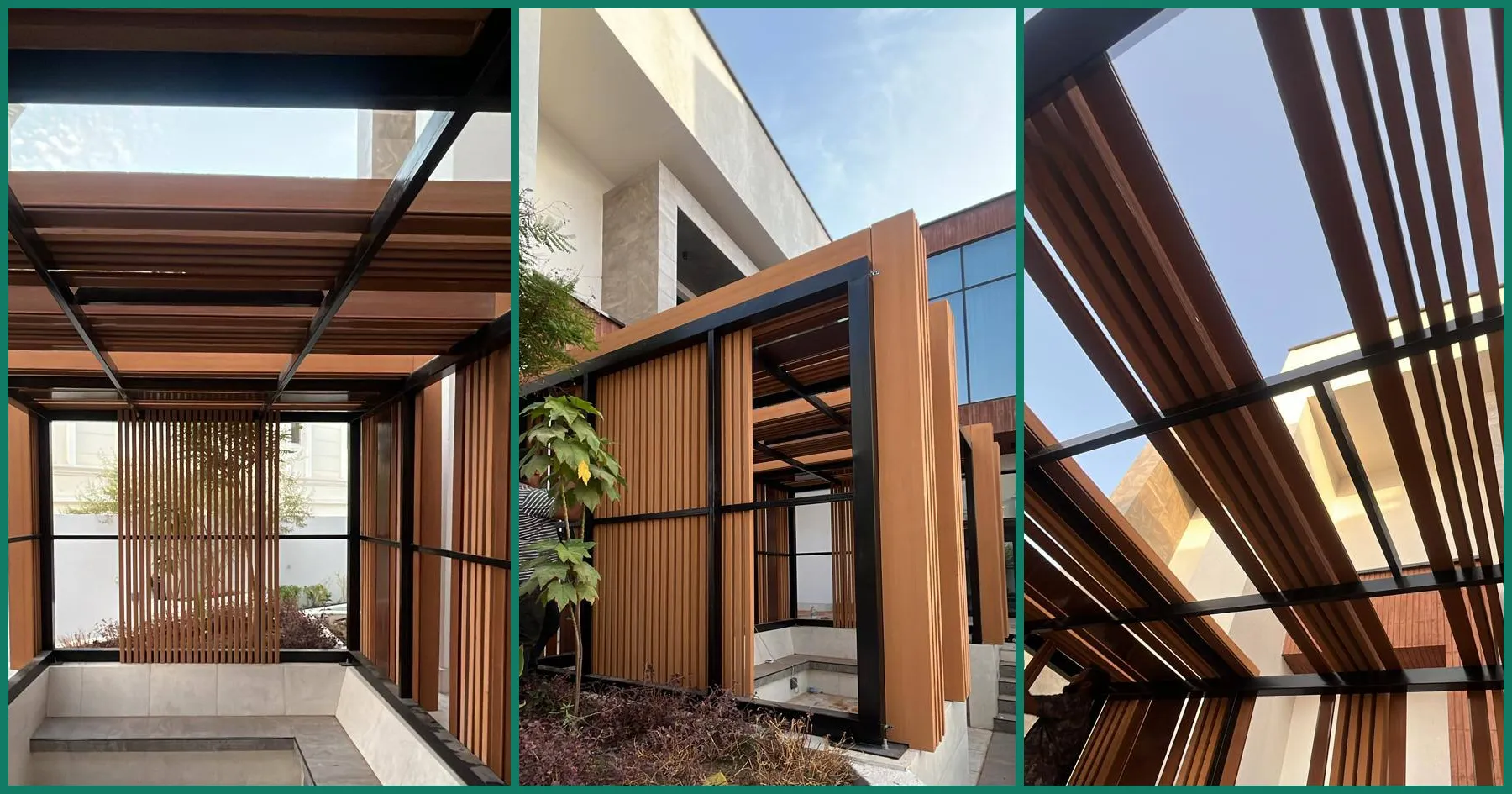 در این پروژه، تیم مترینو اجرای یک پرگولای مدرن با متریال چوب پلاست را در کشور عمان انجام داده است. هدف کارفرما، ساخت سازهای شیک، مقاوم در برابر شرایط آبوهوایی ساحلی و کمنیاز به نگهداری بود؛ به همین دلیل، از ترکیب پروفیلهای تخصصی چوب پلاست استفاده شد تا هم استحکام سازه بالا باشد و هم نمای نهایی یکدست و حرفهای اجرا شود.